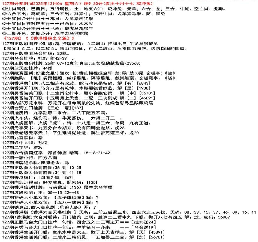 111期开奖时间2022年12月29日(星期四) 晚9:30开 (腊月初七 龙冲狗)